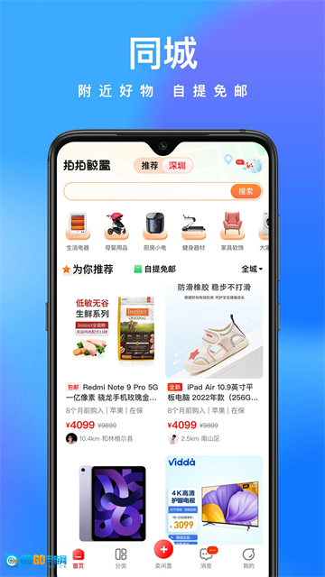 1、进入本站后,打开即进入首页。在此页面,你既能搜索自己心仪欲购的物品,也能查看系统所推荐的二手商品。