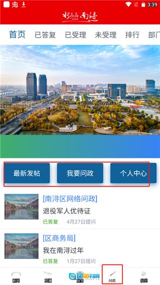 4、点击问政,用户如果有有关疑问的话,可以直接发帖进有关部门发起问政;