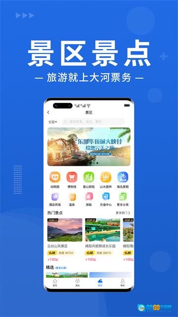 大河票务,也被称作大河票务网,是一款专注于各类票务购买的软件。其主要业务围绕演出和景区展开,囊括国内外众多热门演出以及旅游票务。软件整合了各地的票价信息,功能服务丰富多样,包含演唱会票务、各类景区门票、演出活动门票、团体高端定制票务,还有景区分销系统以及配套验票等。