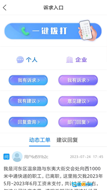 4、我的诉求:只需输入诉求内容、姓名、电话,并选择地点,就能在线提交诉求。