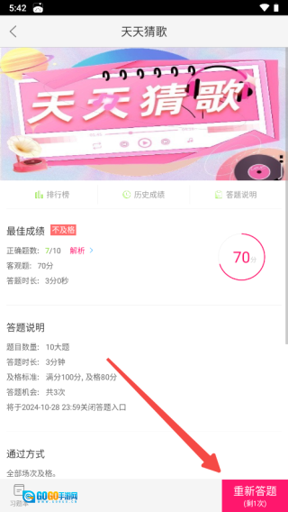 3、点击下方的“开始答题”(每日拥有3次答题机会)