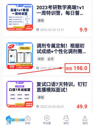 1. 在小白考研课程的介绍页面里,挑选标有拼团字样的课程。