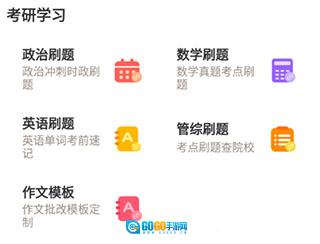2、接下来,在底部的考研学习功能栏目里,挑选相应科目进行刷题就行。