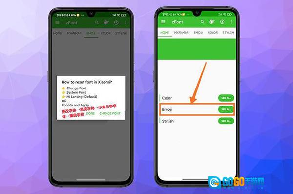 4、重启后再次打开zfont,点击Home页面,选择emoji,接着点击“See All(看全部)”,完成这一系列操作后,zfont的emoji表情包就能正常使用了。