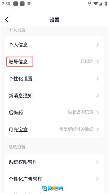 3、进入到设置的界面中,在这里继续点击【账号信息】,前往自己账号信息的页面;