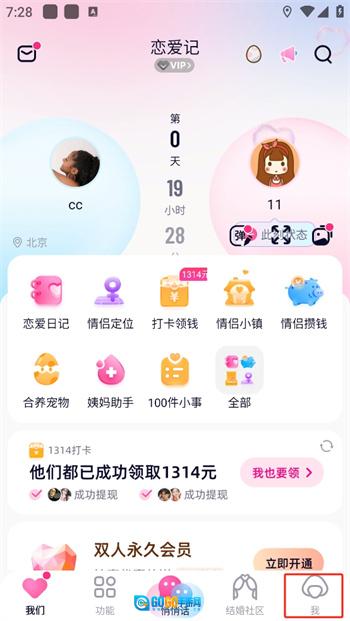 在恋爱记中你们可以共同记录每一天的恋爱时光、蜜语聊天互动
