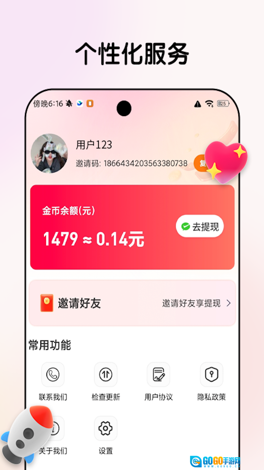 2、设有多种赚钱任务,完成任务可获得金币奖励,金币可兑换现金。