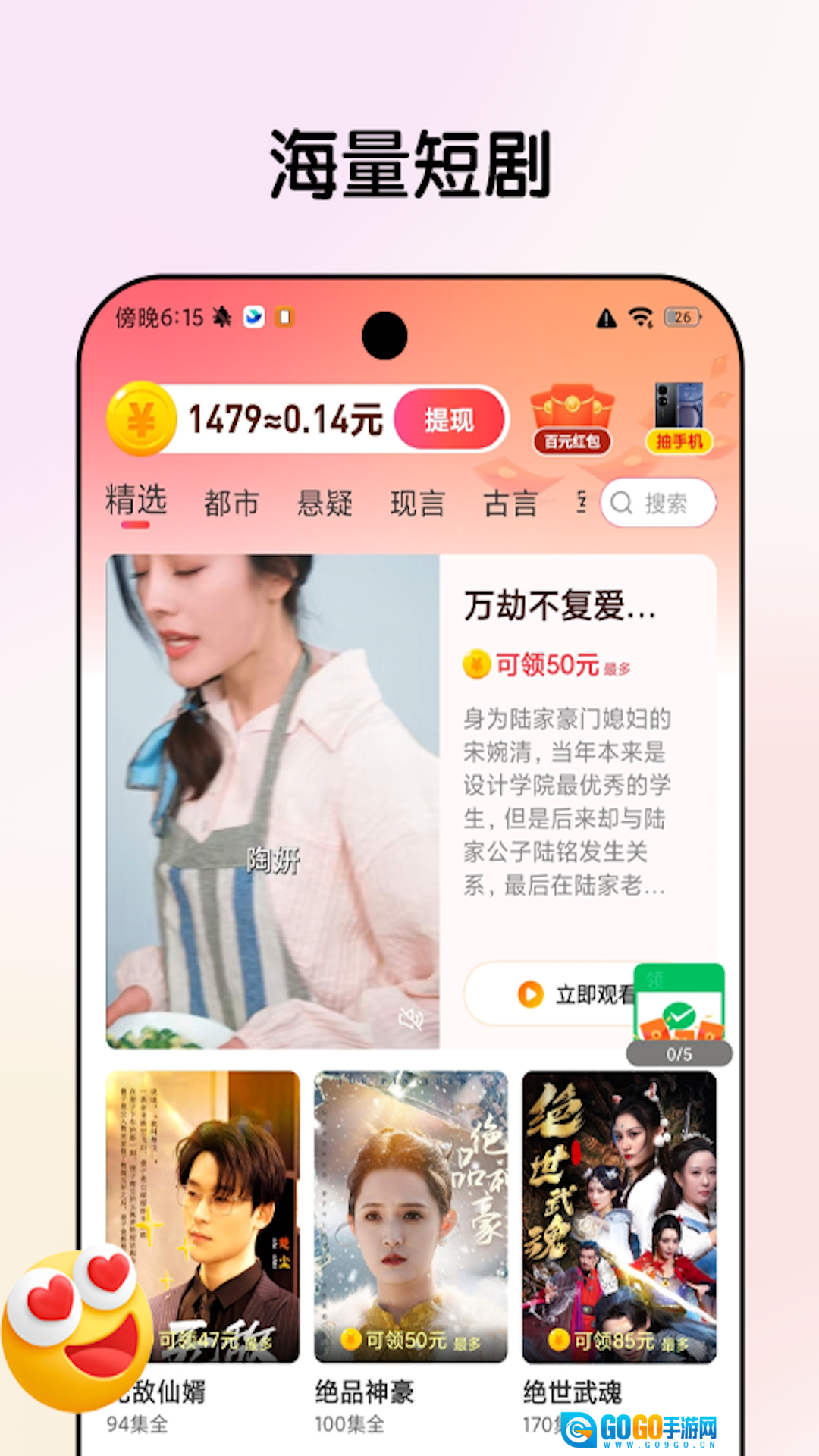 星际快看一款资源丰富的追剧类软件。将短剧观赏与赚钱收益巧妙结合,为用户提供一个既能享受精彩短剧,又能轻松赚取零花钱的平台。这里汇聚了各种类型的短剧资源,满足不同用户的喜好,让用户在休闲娱乐的同时,还能通过完成简单任务获得相应报酬。