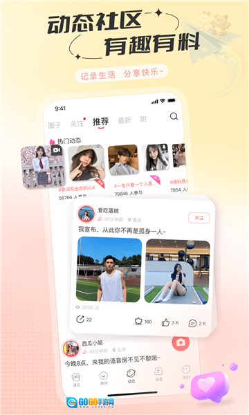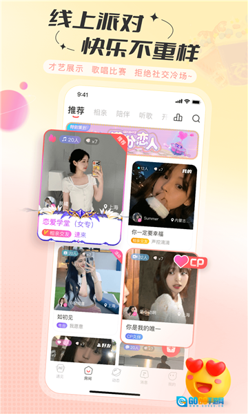 多人聊天室:这里是颜控与声控的汇聚之所,支持视频、嗨歌、涂鸦、录音、弹幕互动、群聊以及各类游戏。无论何时,都有帅哥美女在线陪伴畅玩。