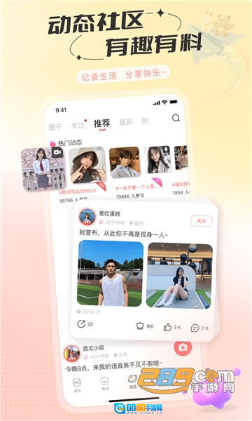 玩友动态:如同陌生人的朋友圈,世界广袤,在这里总能发现新奇好玩的事,邂逅有趣的灵魂。1. 随机速配:系统随机匹配伙伴,需通话超5分钟方可展示个人资料,这一全新玩法,充分保障隐私。