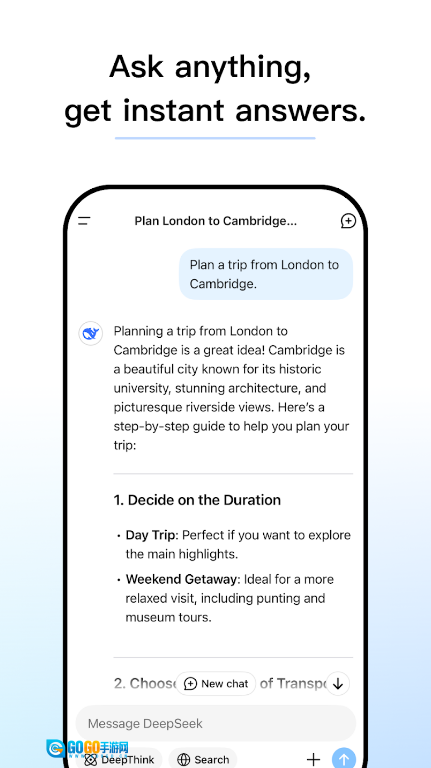 DeepSeek谷歌版是一款由国内自主研发的AI问答软件,完全开源且免费,能为用户带来极为出色的AI问答功能体验,可满足用户的各类需求。此版本为谷歌版,在使用方面与国内版本存在一些细微差异,但整体功能一致。