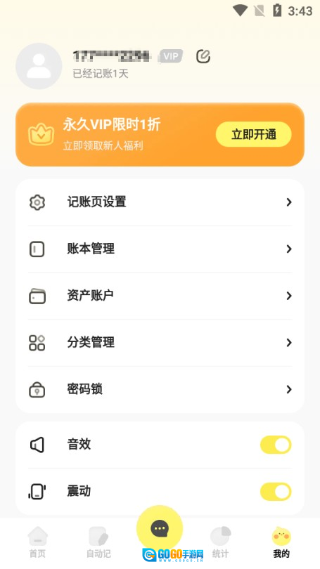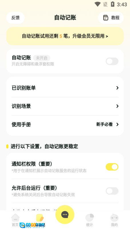 3、启用“自动记账”功能,可大幅节省记账时间。