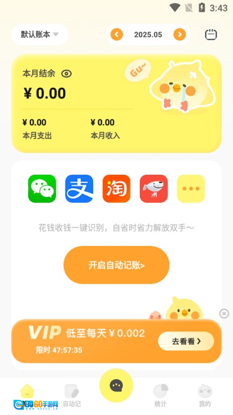 2. 点击选择“自动记账”板块,用户便能查看当月的收支状况。