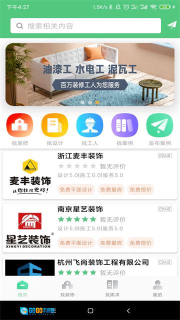 3、平台内具备丰富多样的装修相关资源,涵盖装修公司、专业工人以及设计师等。