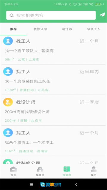 3、用户能够在线寻觅装修工人以及专业的装修团队公司,它们会为你送上令人安心的服务。