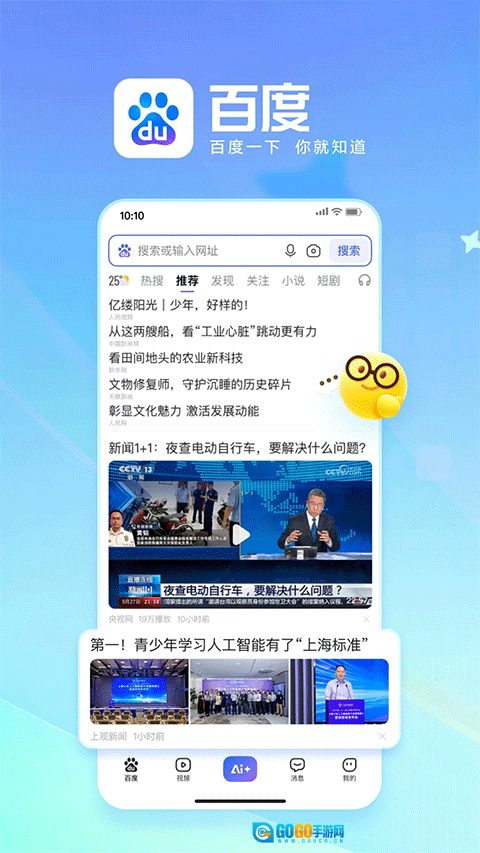 日活过亿,是国内活跃用户top3的,依托百度家族特有的资源及技术优势,改变传统人“搜索”资讯的模式,最懂你的最新热点头条个性呈现,让生活简单高效。