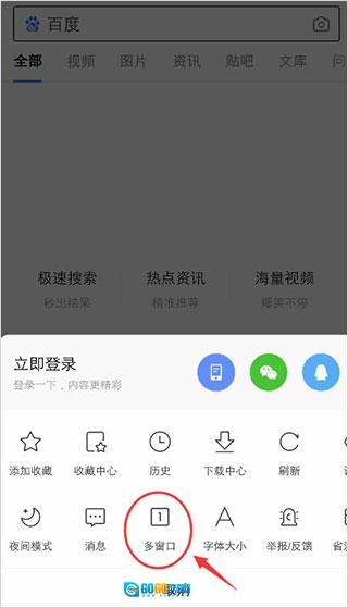 7、进入网页后,还是根据上面的步骤,点击下方的三条横线,再点击【多窗口】就可以查看多个窗口;