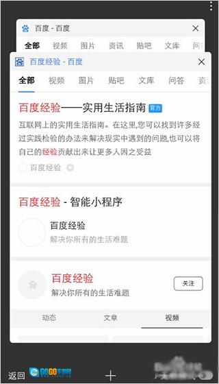 4、进入多窗口页面,就会将刚才的网页缩放为一个窗口,点击下方“返回”就可以退出多窗口;