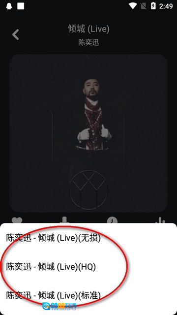4、软件弹出音乐音质选项时,选择无损音质。