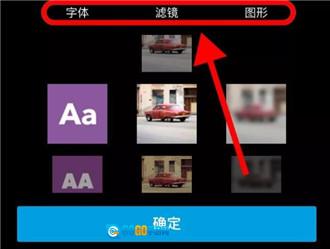 2、点击模板,会看到“字体”、“滤镜”以及“图形”三个选项,还是老方法,大家自己去点击看看。在这里不得不提一下,手机版 Quik 软件没有“调色”功能,只有“滤镜”选项,而且说实话,这些“滤镜”我个人不是很喜欢,所以绝大多数情况,我是直出色彩