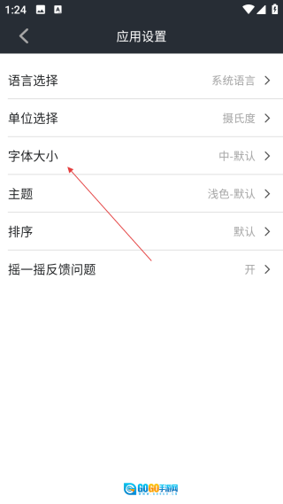 3、于设置界面,轻点【字体大小】,随即进入字体大小设置界面。