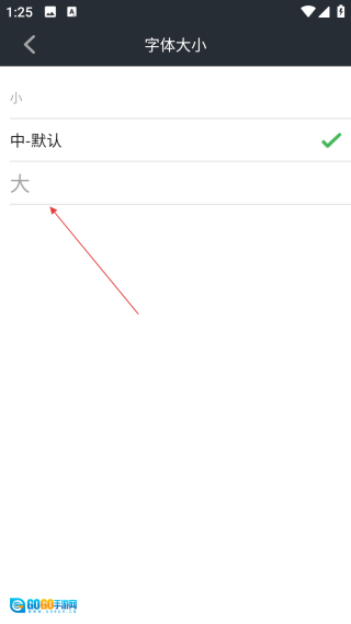 4、进入字体大小设置界面后,选中【目标字体大小】选项,就能对应用字体大小进行调整。