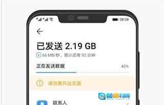 3、这时,屏幕会显示旧手机处于数据发送状态,新手机则处于数据接收状态,只需耐心等待数据发送与接收全部完成即可。