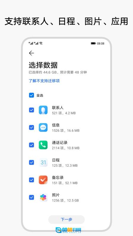 1. 全数据迁移,可实现所有手机数据的快速转移。