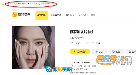 2. 从酷我音乐上复制自己想听的歌曲链接。