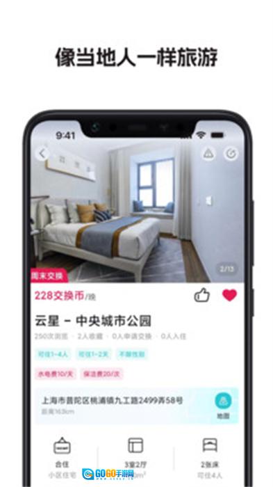 换房旅游是一款优质且实用的旅游住宿应用软件。借助这款软件,用户能够随时随地交换心仪的房屋住宿。软件提供了极为丰富的住宿房源,使用户可轻松实现随时换住,不仅节省了住宿开支,还能结识更多新朋友,让用户在旅游住宿方面更加省心省力。