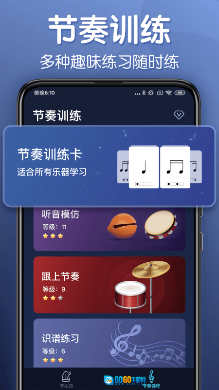 3、同时还设置了多种趣味节奏训练类型,助力学习者能更迅速地掌握节奏型与节奏感。