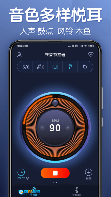 2. 该应用提供多种不同节奏可供选择,播放精确且会显示时间。