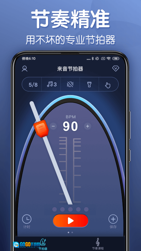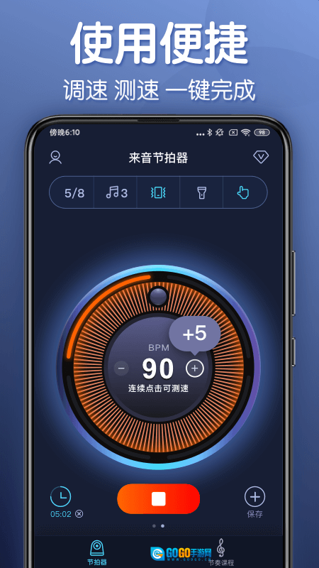 来音节拍器提供丰富多样的节奏选择,播放精准且能显示时间。它还设置了多种趣味节奏训练类型,助力用户更快掌握节奏型与节奏感。该软件具备多种动感音效,像人声、鼓点、木鱼、风铃等音效可随意切换。与此同时,用户能够自主调节各种节奏的音律,直至调出自己需要的节拍。这款应用拥有简洁大方且充满人性化的操作界面,另外还支持连续敲击测速功能,使用户能迅速知晓音乐的速度。