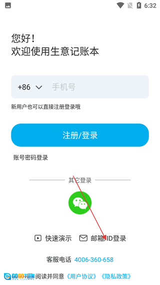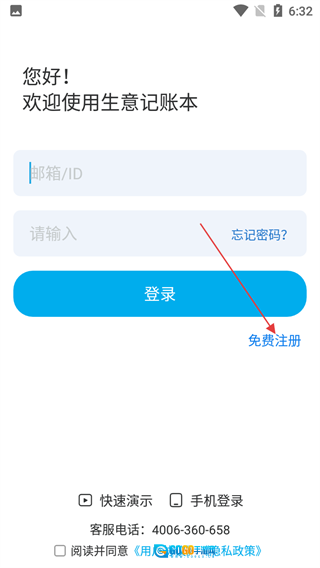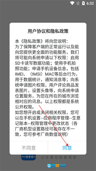 1. 打开生意记账本,随即会弹出用户协议与隐私政策提示,点击【同意】,就能进入登录界面。