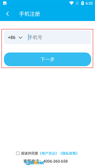 4、进行手机注册操作时,首先输入手机号,接着勾选同意《用户协议》以及《隐私政策》,随后点击【下一步】,按照系统给出的提示完成注册流程,完成后便可使用。