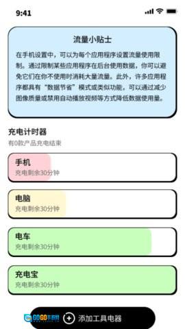 3、这款应用具备充电计时器这一工具,能够直观呈现出电器设备的剩余充电时长。