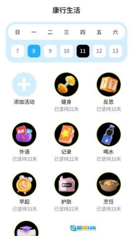 2、用户也能够把日常打卡活动添加到应用里,像健身、喝水、学习外语、早起、护肤等各类习惯养成活动都可以。