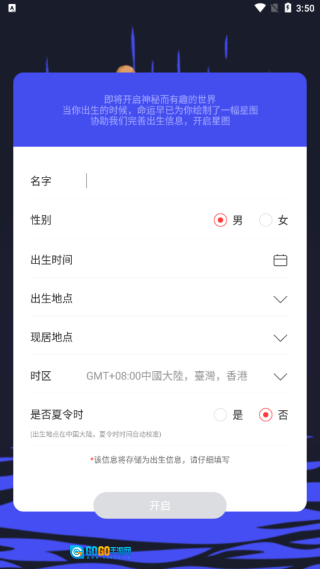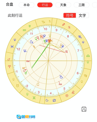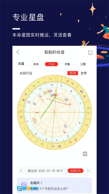 2、只要输入本人真实信息,就能获取个人星盘,借助它可查看本命状况及时运等内容。
