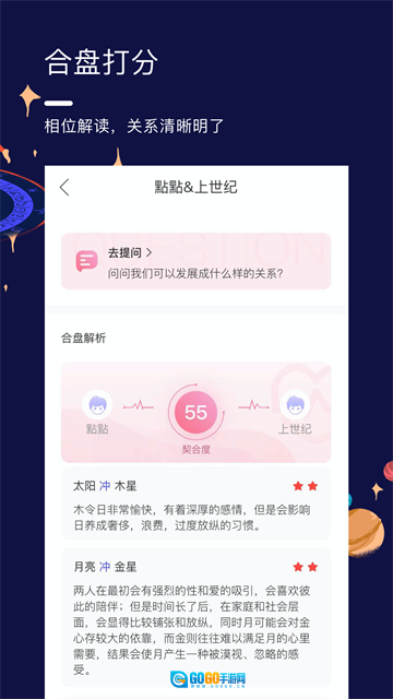 【双人合盘】契合度分数清晰呈现,一目了然。