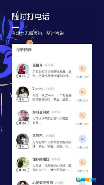 心理达人提供在线服务,若你有困惑难题,能借助线上服务,与各位老师展开一对一的匿名倾诉。老师们秉持专业态度,助力你找到恰当的解决办法与答案。