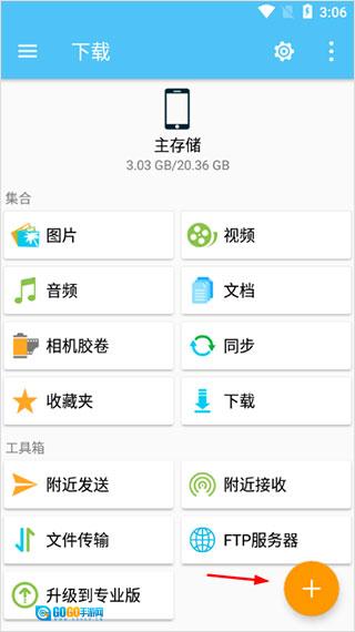 1. 开启File Explorer安卓版本,轻点“+”按钮;