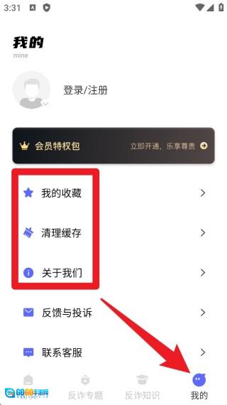 5. 轻点底部的「我的」标签页,就能进入账户管理界面,在此界面可查看收藏内容、清理缓存,还能联系在线客服。