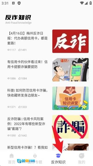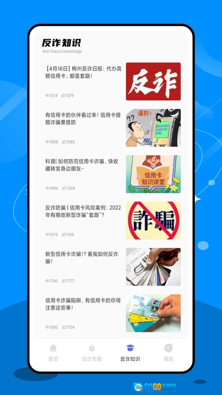 4. 切换至底部的「反诈知识」页面,便能阅读各类图文形式的防范文章,学习近期的热点案例及其应对方式。