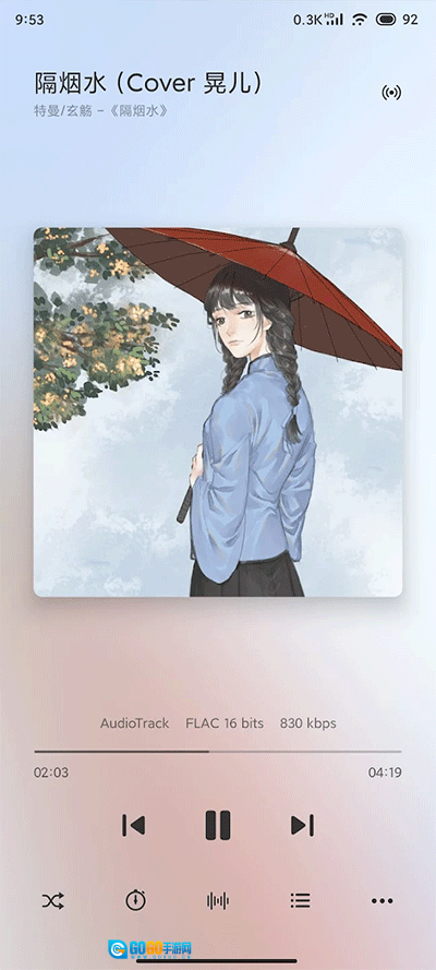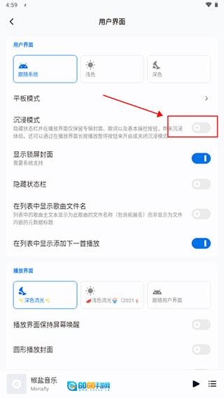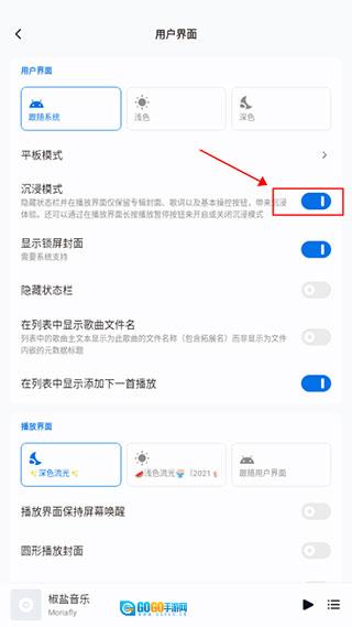 在设置中或在播放界面长按播放/暂停按钮即可开启,仅保留专辑封面以及特定按钮,带来沉浸体验