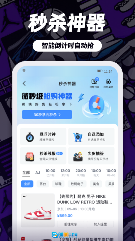 1. 半自动操作步骤如下:首先打开盯潮应用,接着使用其中的秒杀神器功能,从中挑选球鞋并添加至购物车。之后返回盯潮应用,开启悬浮时钟,再回到购物车页面,依据时钟计时来提交订单。