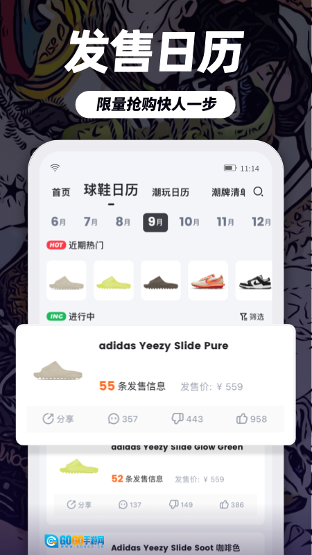 1、发售日历——让你随时随地知晓近期球鞋的发售时间。