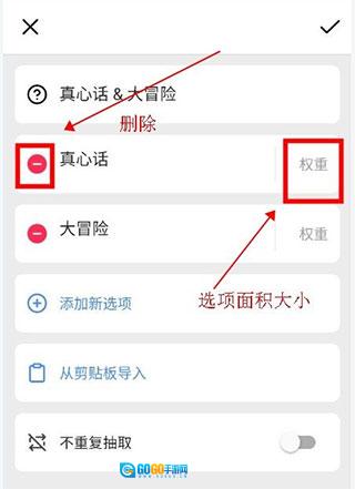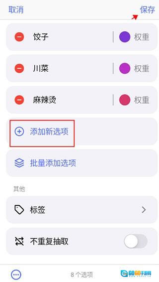 4、点击添加新选项,可以新增转盘里的内容。不满意可以点击左边的红杠删除选项。