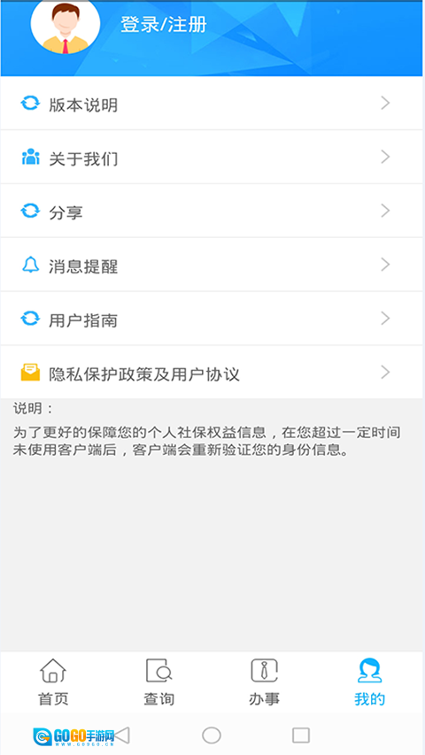 4、点击我的,可以查看软件隐私政策,版本说明等信息