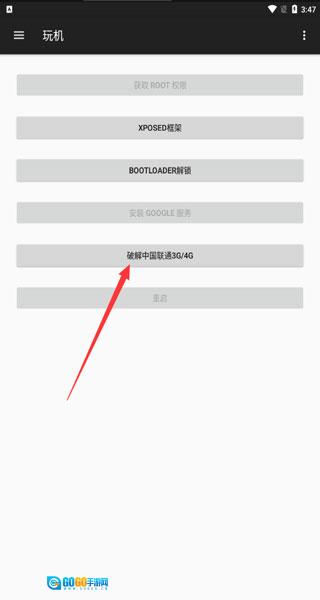 在玩机选项中,点击【中国联通3G/4G】,若提示成功,点击确定,随后将手机重启即可。