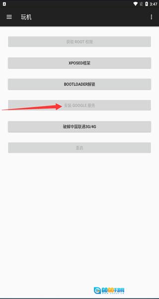 不少大型游戏都依赖Google服务的支持,在玩机选项中,我们仅需点击【安装Google服务】,随后重启手机便可。